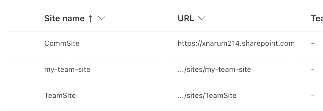 Site url under the domain - ex) /sites/TeamSite