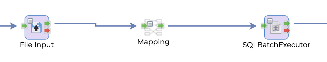 The flow starts with the FileInput task, which reads the source file and passes the data to the Mapping component. The Mapping component is used to transform the data into a format that can be inserted into the target table. In this case, it simply maps the source columns to the target columns with the same name.