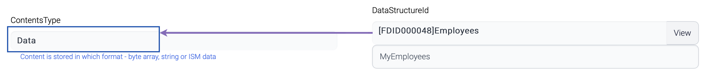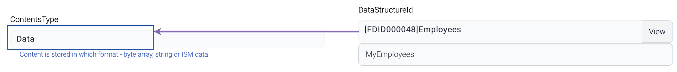 The default option is byte array. If ISM data is chosen, the contents are parsed against the predefined data structure. And this data structure comes from the Output property