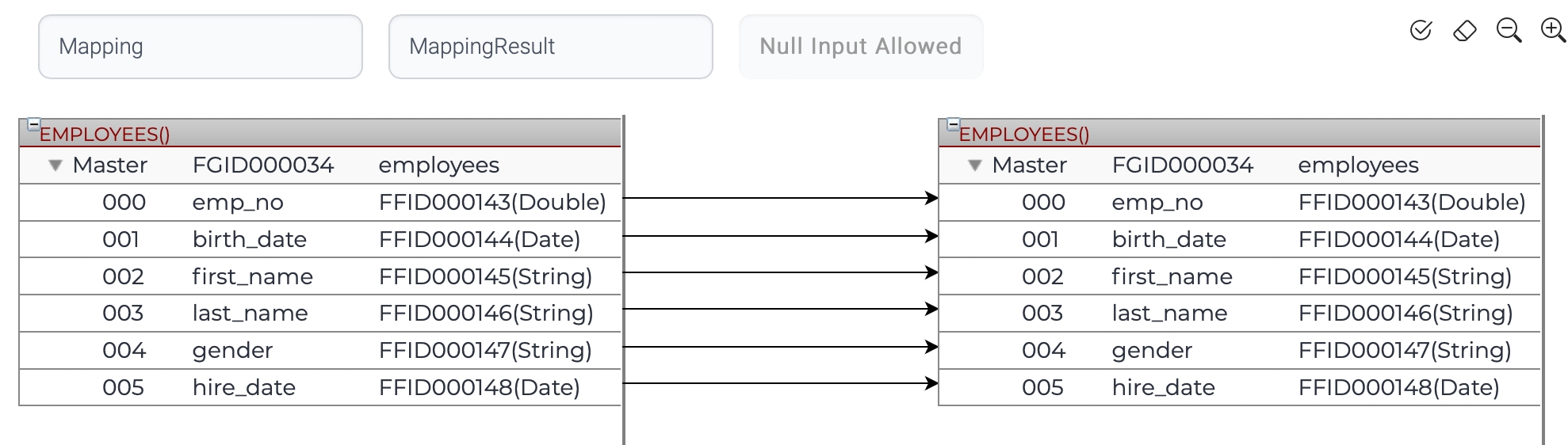 Mapping does simply connect the input fields to the correspondent output fields.