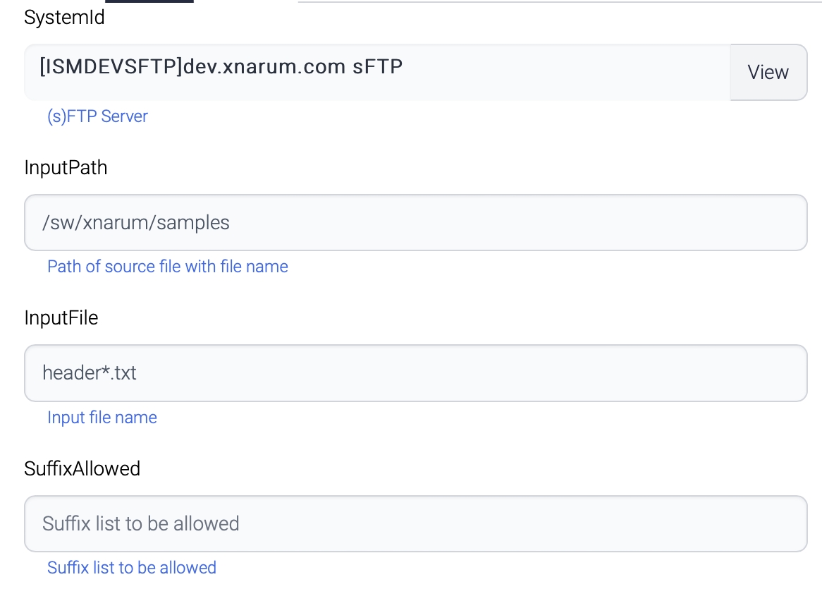 The FTP Input component gets header*txt from the remote sFTP server and store in the local disk.