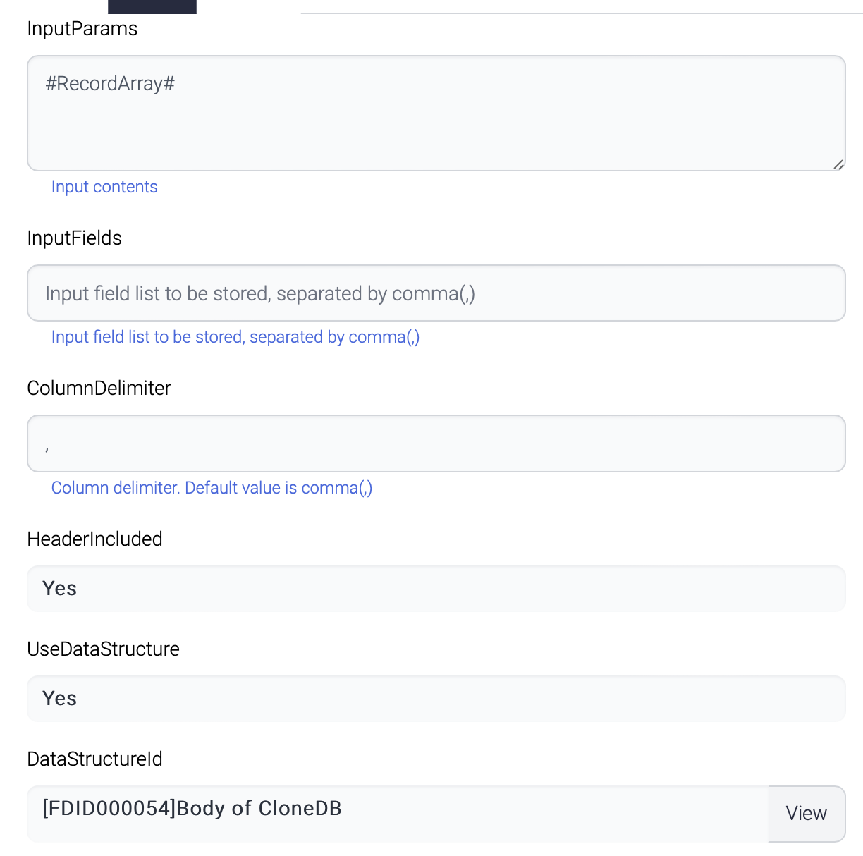 The RecordExtract component parse the input file against the Header-Body data structure, extracts Body data, and store into the parameter called RecordArray in the memory.